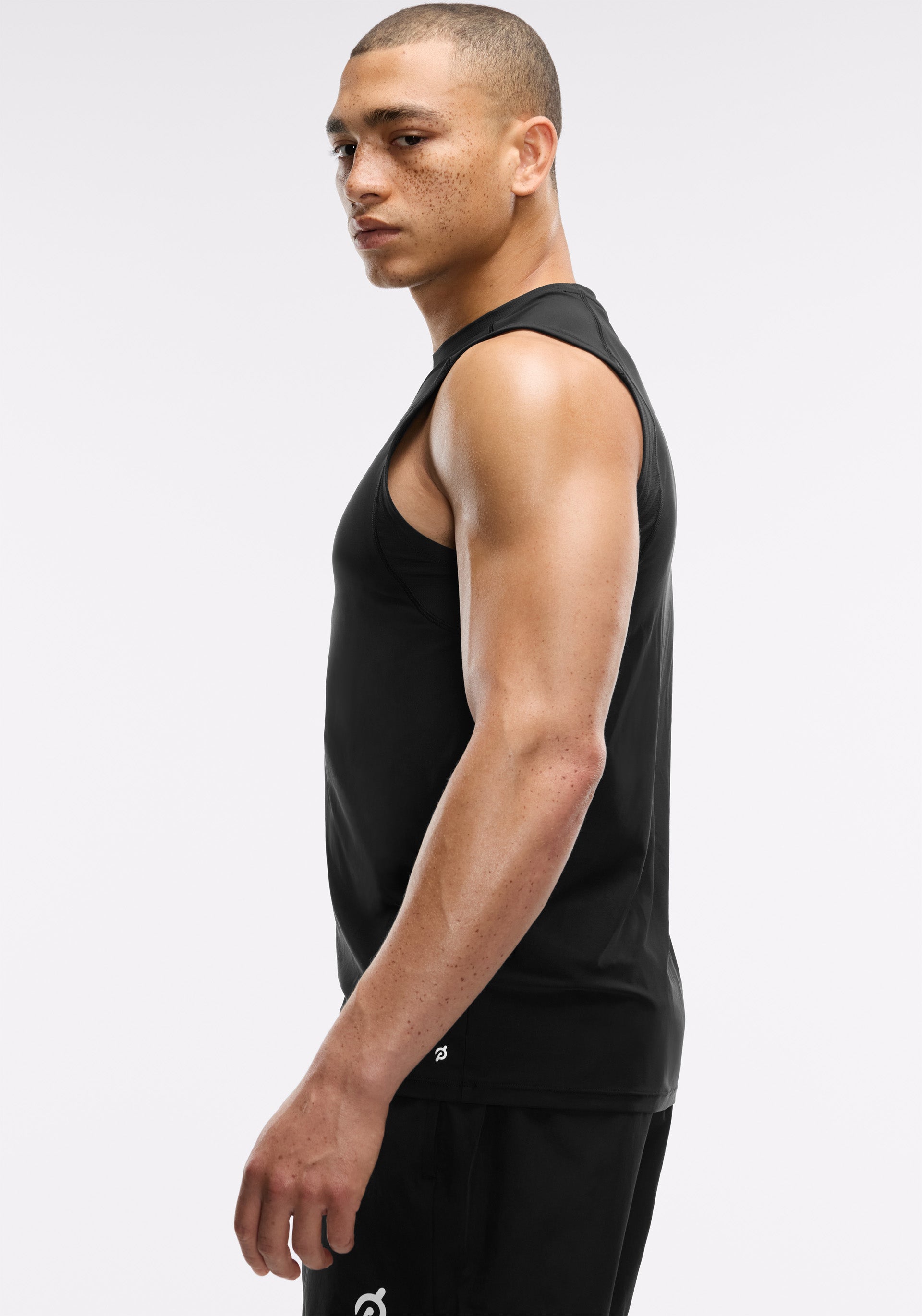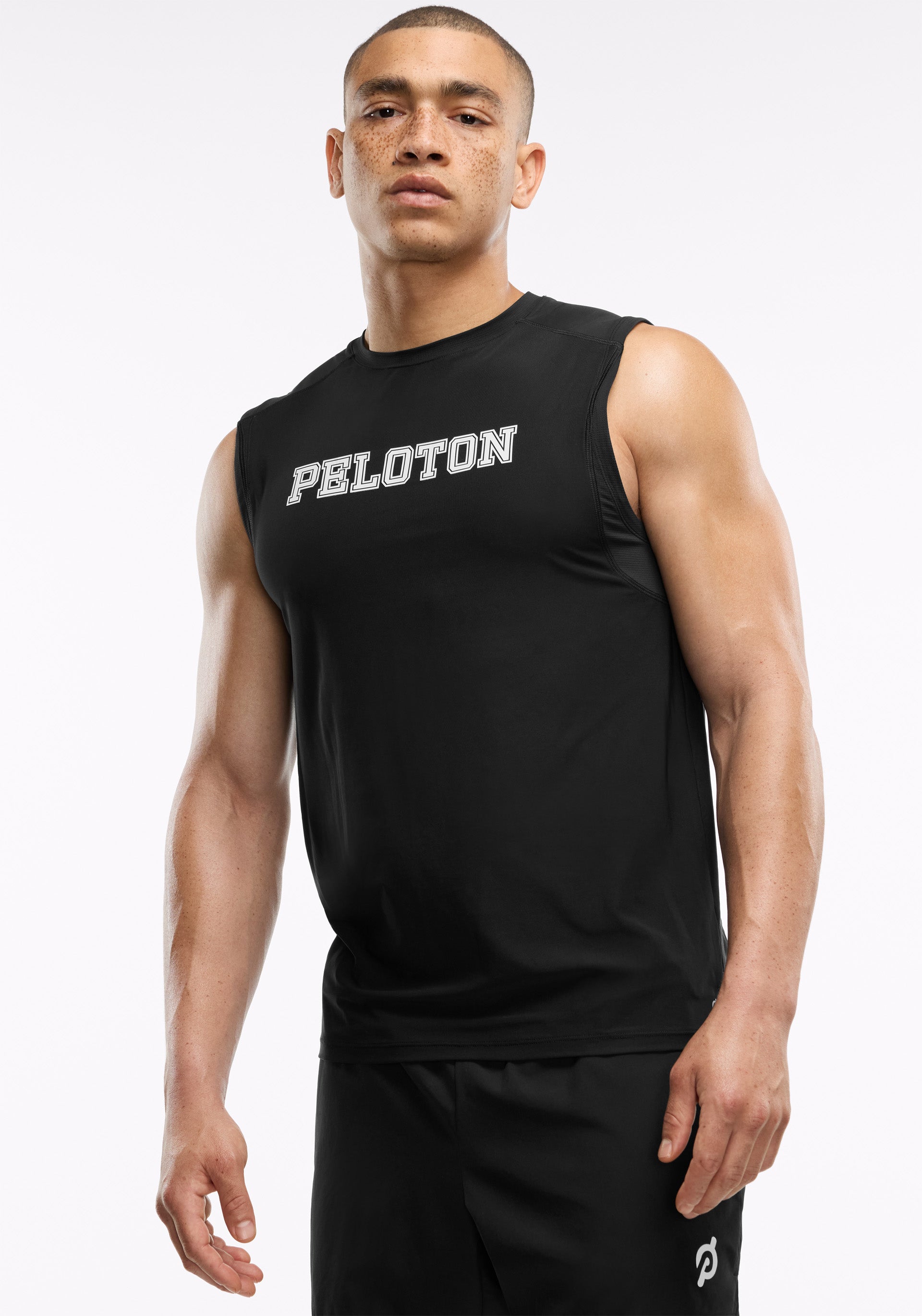 • Muscle tank with self neckline and hem as well as mesh piecing at armhole