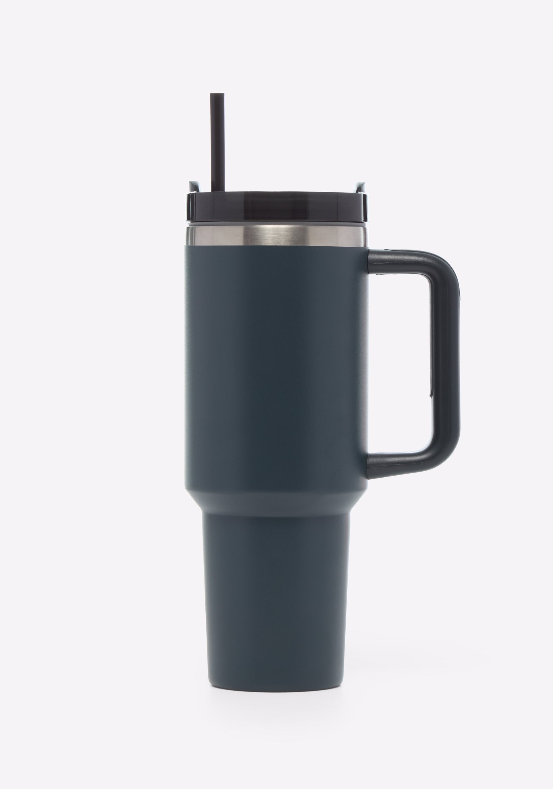 Straw tumbler with double-wall vacuum-insulated stainless steel