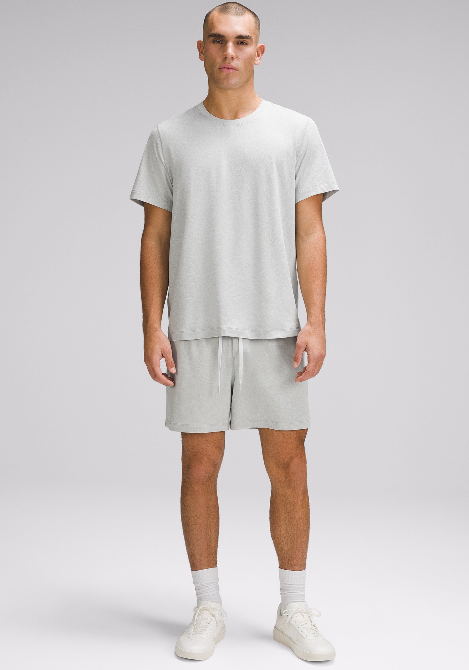 5” inseam, short with waistband drawcord, back zippered pocket, and drop-in hand pockets with interior stash pocket