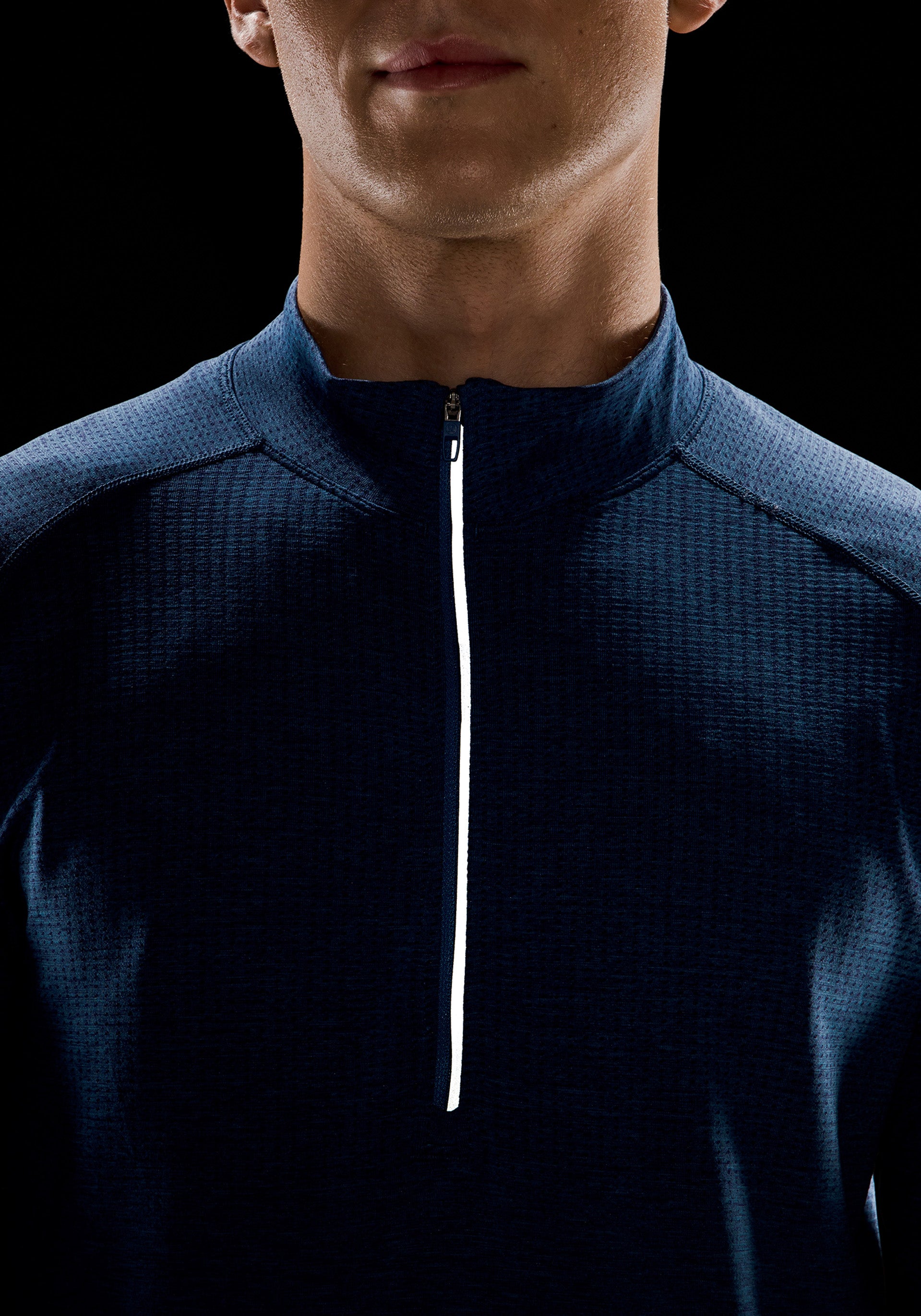 Long sleeve, half-zip with zipper garage tp keep chafe in check