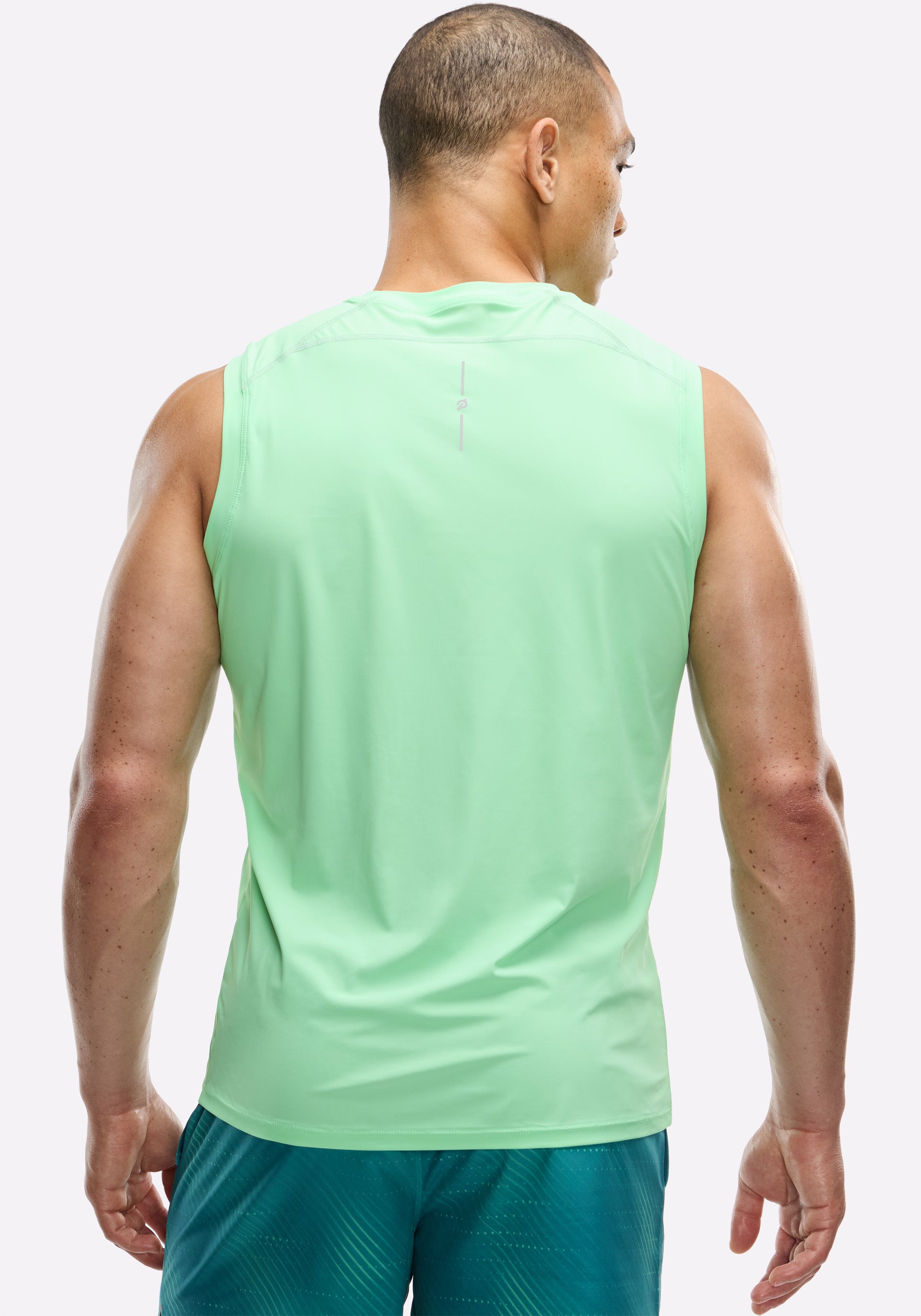• Crewneck tank top with reflective thread style lines and shoulder piece detailing