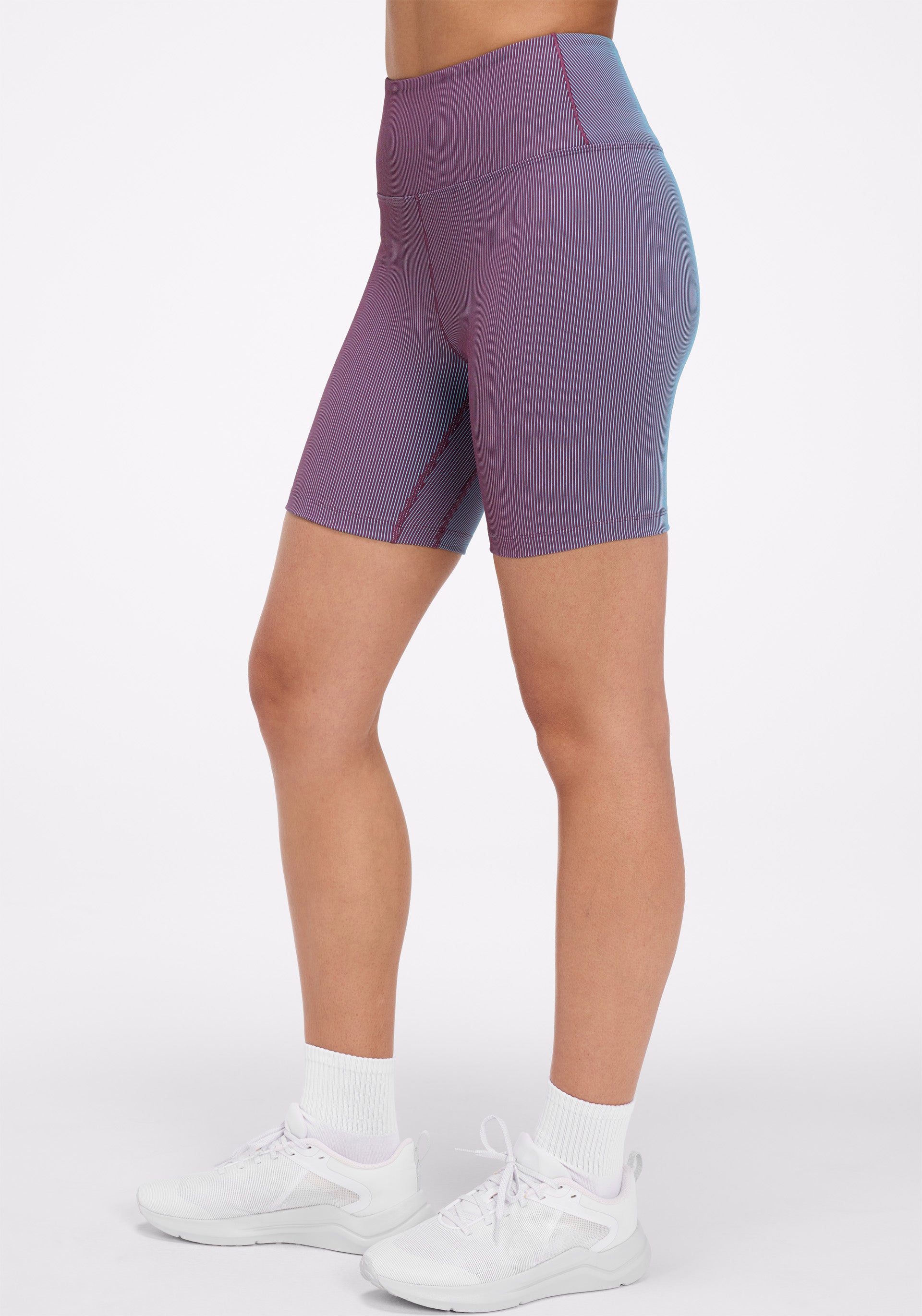 • High rise, 7" inseam bike short with medium compression, back stash pocket, and elongated gusset