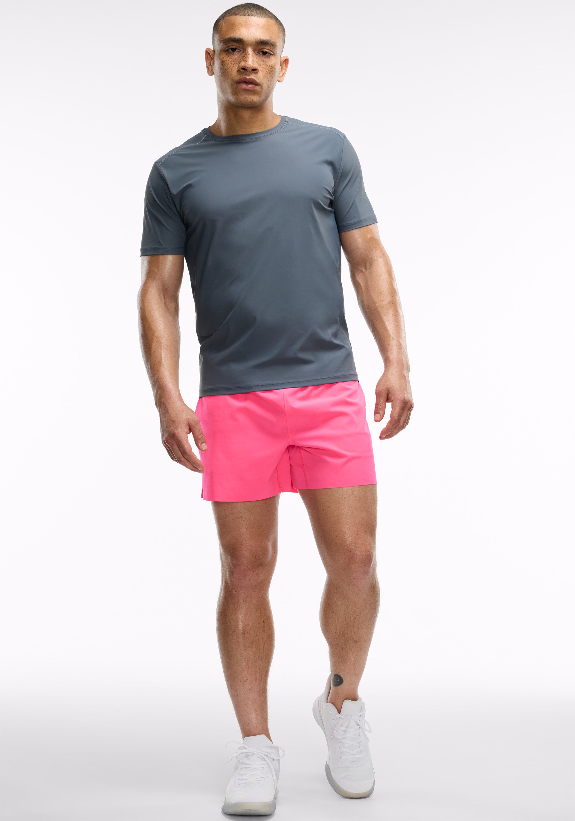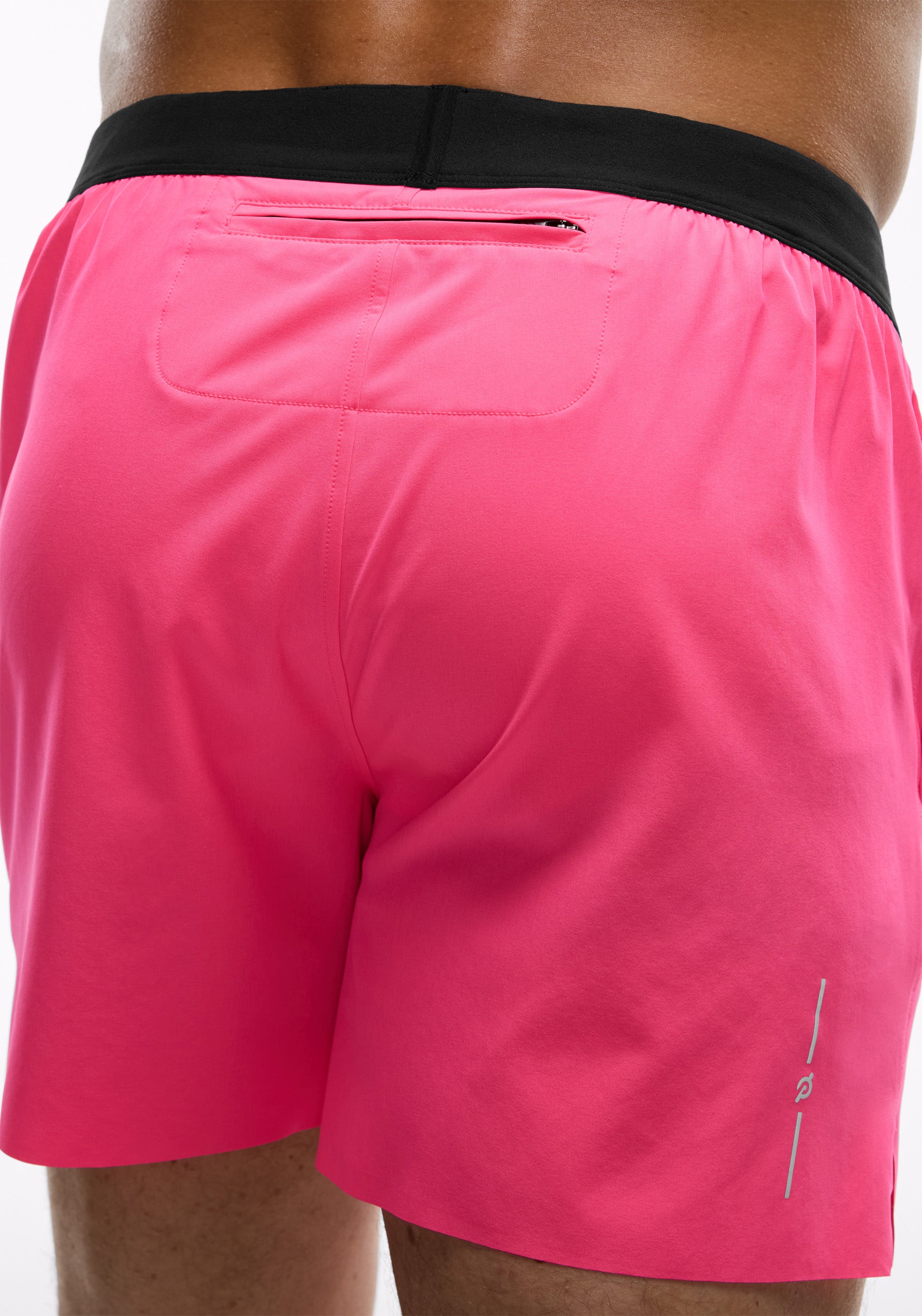 • 5" inseam brief-lined short with elastic waistband, interior drawcord, functional gusset, side hand pockets, and center back zip pocket