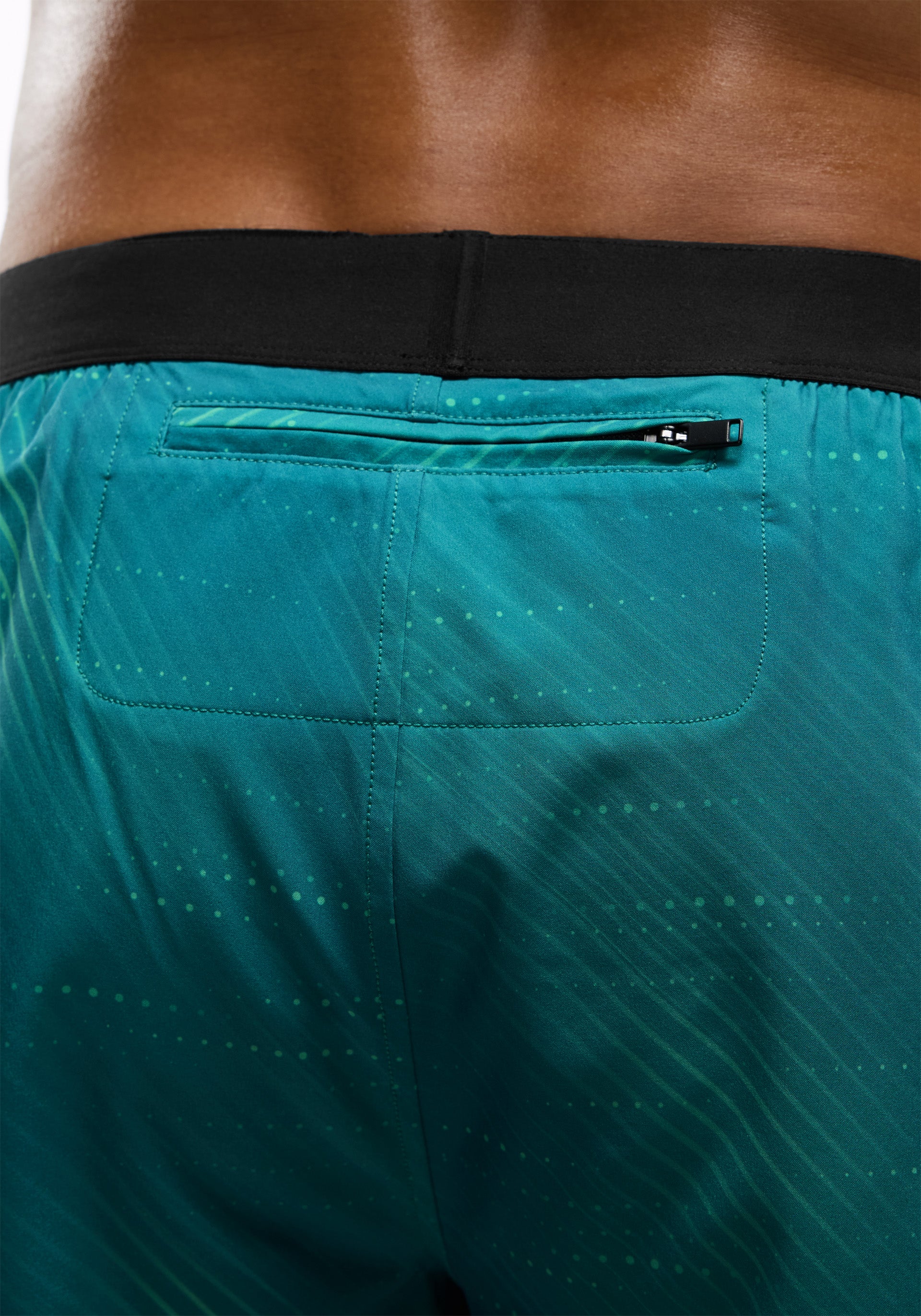 5" inseam brief-lined short with elastic waistband, interior drawcord, functional gusset, side hand pockets, and center back zip pocket