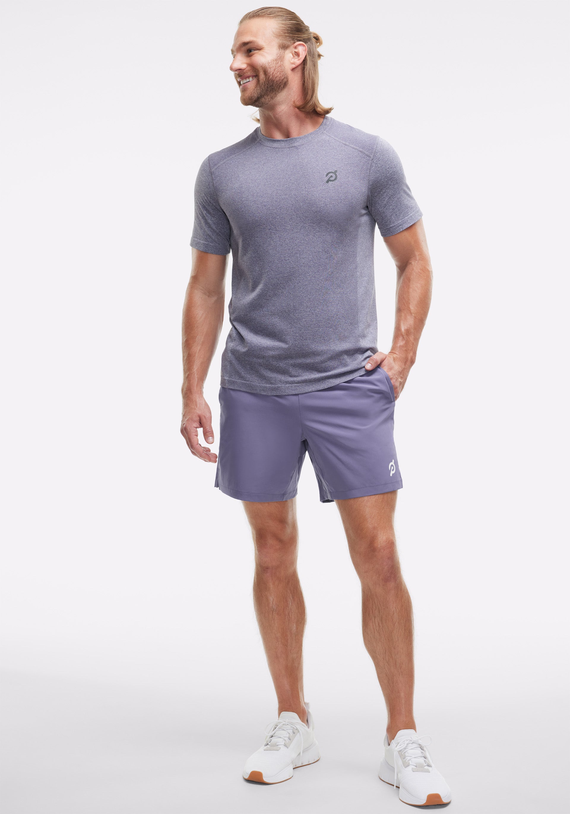 • 7" inseam short with encased elastic waistband, functional gusset, back yoke detailing, and on seam front pockets